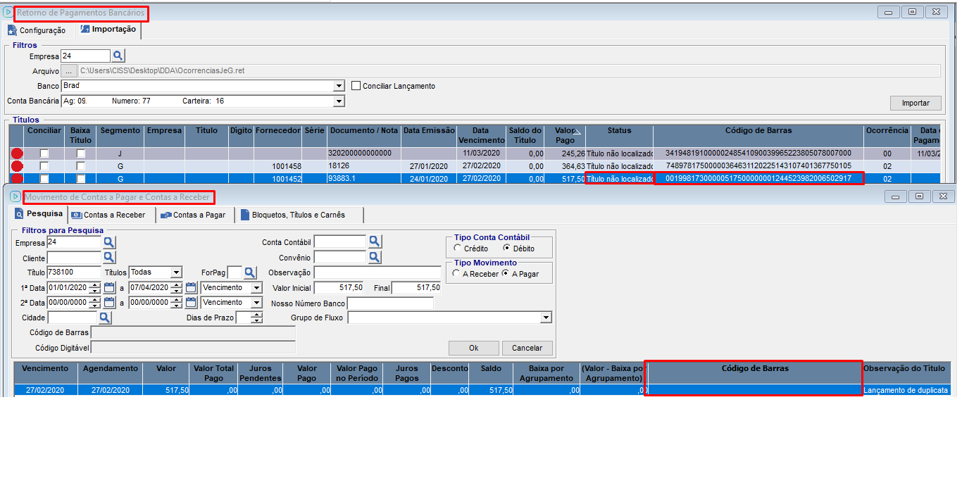 Encontrado mais de um título para o retorno: Quando as informações do arquivo de importação correspondem a mais de um titulo do contas a pagar no CISSPoder.