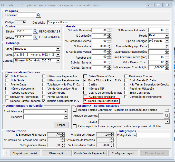 OBS: Configurar de acordo com o documento fornecido pela agencia bancaria.