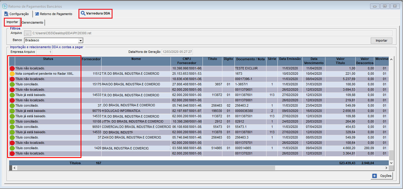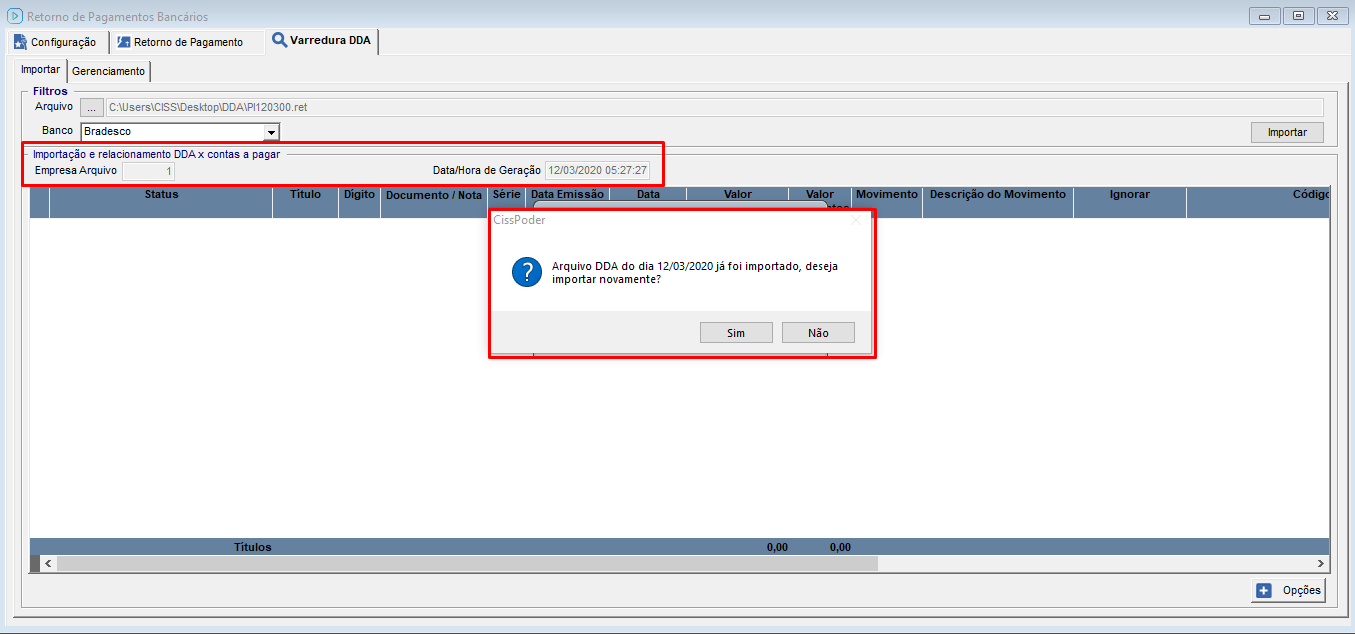 💲Importação De Arquivo De Varredura De Boletos DDA