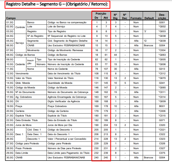 A configuração do layout do segmento é de acordo com o Layout CNAB 240 conforme a instituição bancária a qual foi solicitado a liberação do serviço.